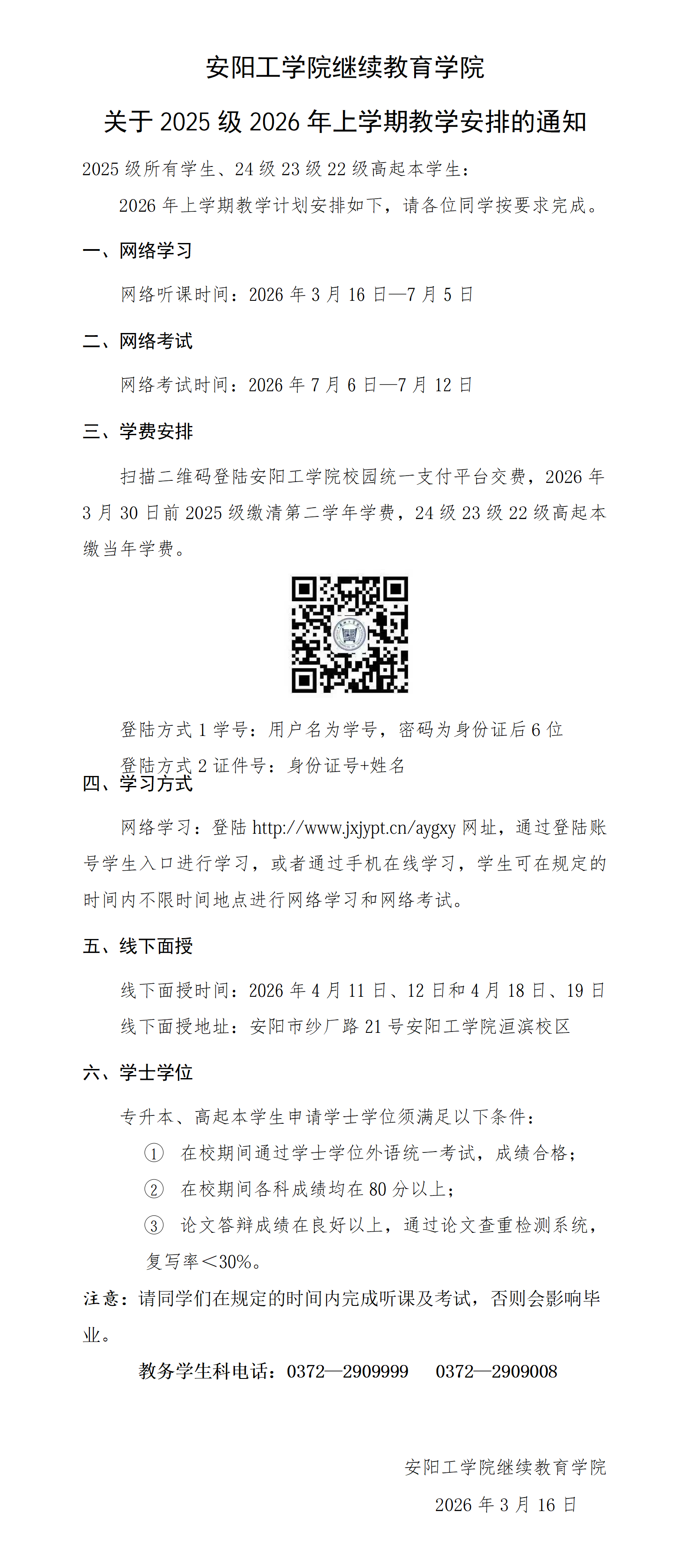 2025级2026年上学期上课安排