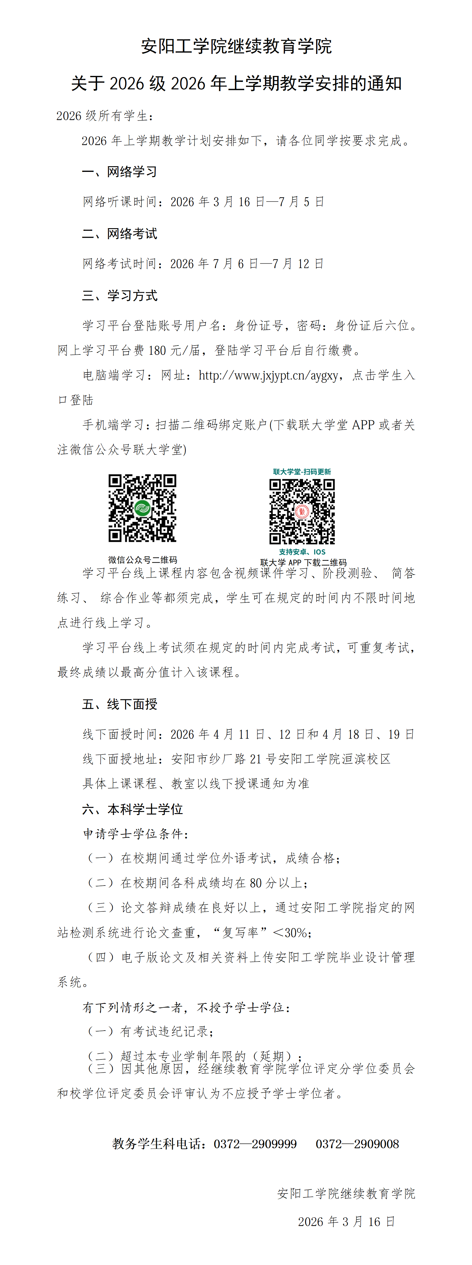 2026级2026年上学期上课安排